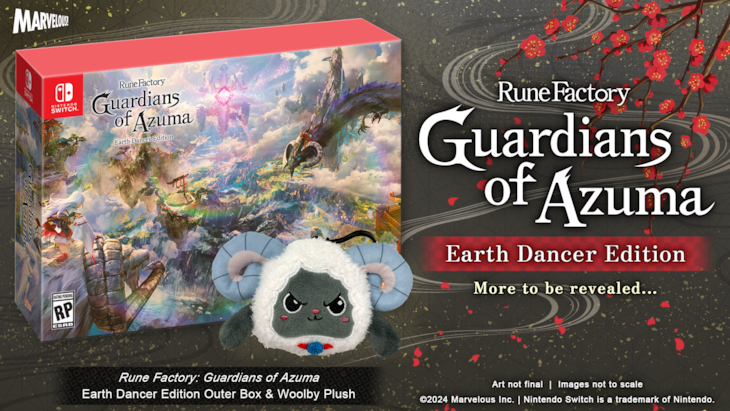 Pre-orders for the Rune Factory: Guardians of Azuma “Earth Dancer Edition” will be available soon via the Marvelous USA store and at participating retailers for an MSRP of $99.99. This stunning collection comes in a custom outer box featuring awe-inspiring art of a battle high above Azuma, and includes a physical copy of the game, an original soundtrack CD, an art book, an Azuma-inspired folding fan, the “Seasons of Love” DLC bundle, additional DLC costumes for your protagonists and their divine sidekick Woolby, and a plush Woolby keychain. The standard edition of the game will also be available to pre-order for an MSRP of $59.99. Details on digital editions and pricing will be announced later.
